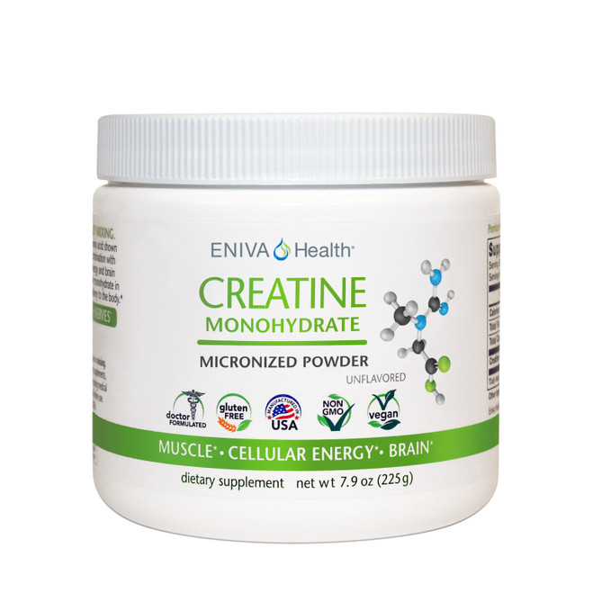 Creatine Monohydrate is a highly researched amino acid shown to support muscle strength, power and size in combination with high intensity activity.* It also supports cellular energy and brain health.* Eniva Health® provides premium creatine monohydrate in micronized form for easy mixing and optimal delivery to the body.*