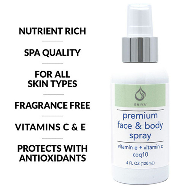 We have packaged this breakthrough liquid solution in a sleek, 4 ounce bottle, with a fine mist micron sprayer. This gives off a very fine mist which will bathe your skin in nutrient-rich moisture. Other skin enhancing products in the marketplace retail between $30 and $70 for just 1 fluid ounce. And, most of those products have only two or three main ingredients. Eniva Nourishing Body & Facial Mist Spray has 4 fluid ounces and has numerous active ingredients.